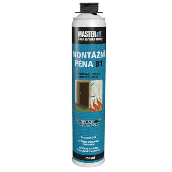 Namestitvena ognjevarna pena B1 750 ml – pištola Ognjevarna montažna pena B1 je enokomponentna poliuretanska pena. Pod vplivom zračne vlage in temperature se razširi do 40-krat za svojo prvotno prostornino. Pena je odporna proti plesni, vodi, UV-sevanju in jo je mogoče prebarvati. Uporaba: Protip