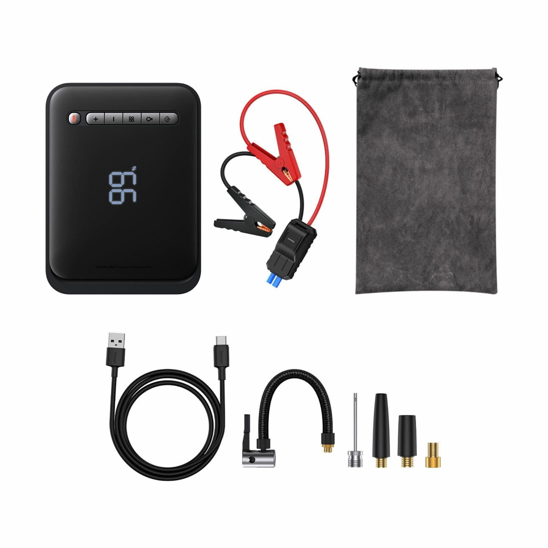 Baseus prenosna avtomobilska zagonska baterija z vgrajeno zračno tlačilko je nepogrešljiv dodatek v vsakem osebnem avtomobilu. Praktična naprava, ki bo zagnala vaš avtomobil v primeru izpraznjene baterije. Vgrajeno zračno tlačilko pa lahko uporabite v primeru izpraznjene pnevmatike. LED luč pa poskrbi za pomoč v temi.