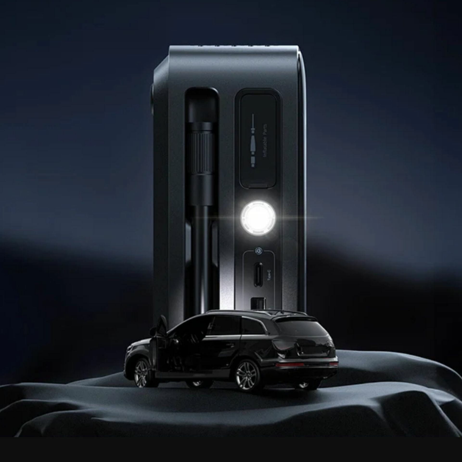 Baseus prenosna avtomobilska zagonska baterija z vgrajeno zračno tlačilko je nepogrešljiv dodatek v vsakem osebnem avtomobilu. Praktična naprava, ki bo zagnala vaš avtomobil v primeru izpraznjene baterije. Vgrajeno zračno tlačilko pa lahko uporabite v primeru izpraznjene pnevmatike. LED luč pa poskrbi za pomoč v temi.