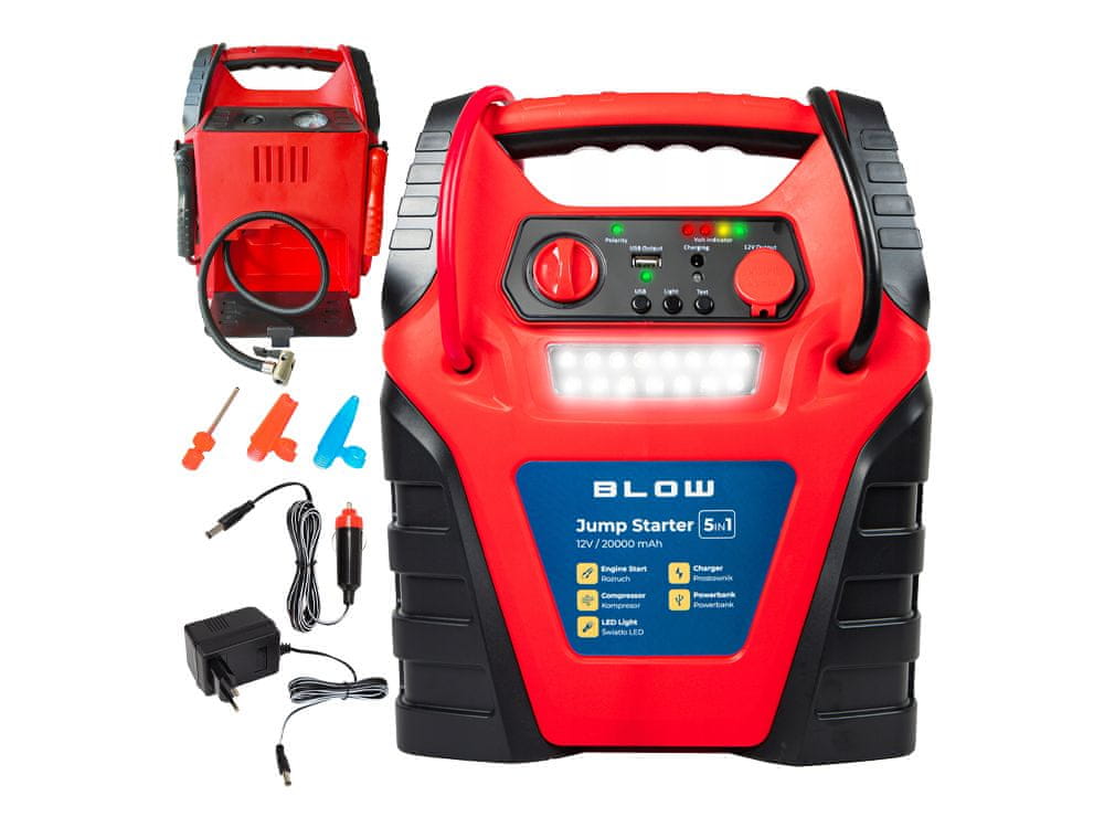 Blow JS-5V1 zagonska baterija / jump starter s kompresorjem, 5V1, USB-A, DC 12V