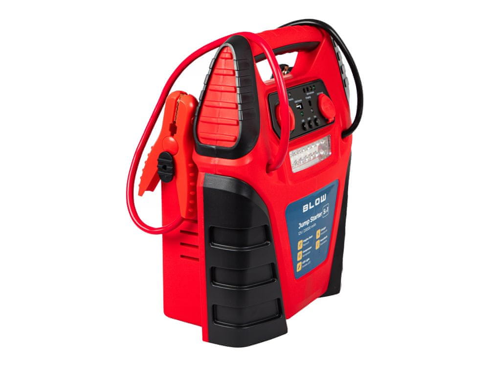 Zaganjalnik BLOW je zasnovan kot kompakten, trpežen in prenosljiv sistem za zagon vozil. Ta enota bo zagnala vse vrste vozil in akumulatorjev in jo je mogoče uporabiti tudi kot prenosni vir napajanja DC 12V v izrednih razmerah. Vgrajene ima enostavne LED indikatorje stanja delovanja, dodatno pa ima vgrajeno 12V vtičnico in priložen adapter za avtomobilski vžigalnik. Baterija se lahko napolni tudi s priloženim 220V napajalnikom.