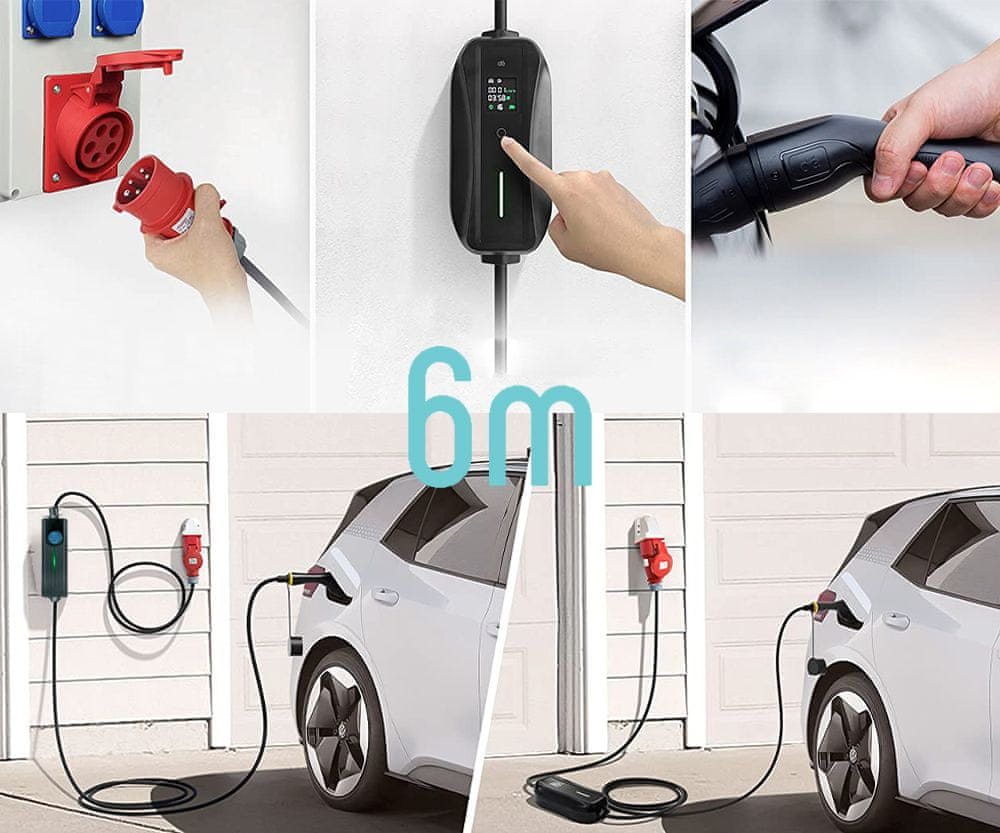- Dolžina kabla 6 metrov – seže povsod in omogoča polnjenje tudi nekaj metrov stran od najbližje električne vtičnice.