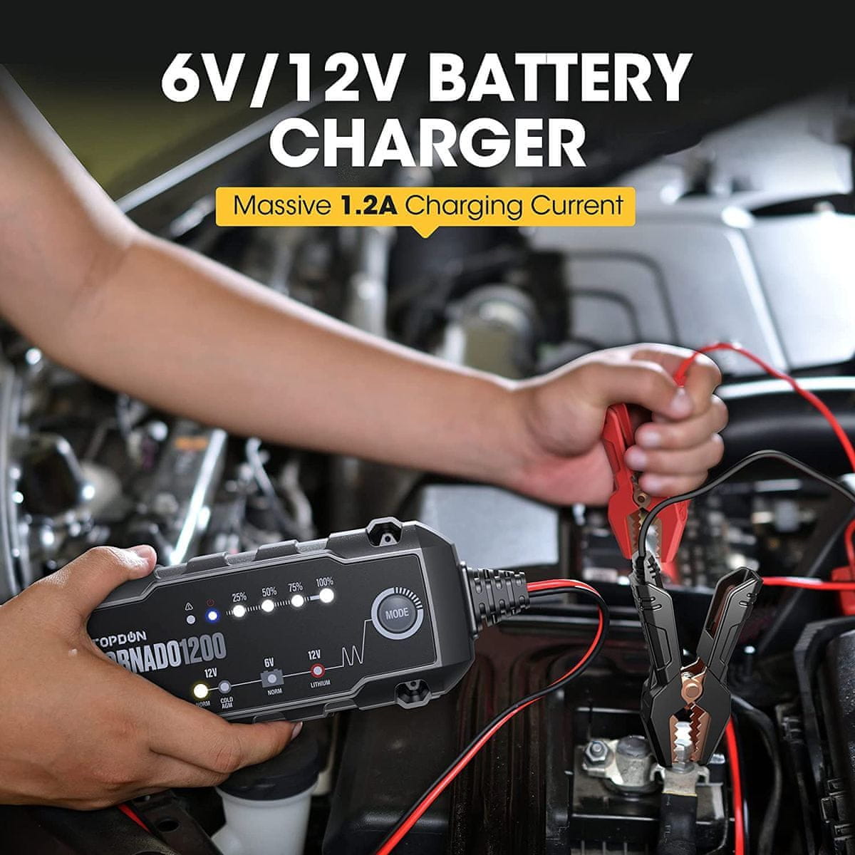 Naprava Tornado 1200 lahko polni 6V nedelujoče akumulatorje z napetostjo, večjo od 4,5 V, in 12V nedelujoče akumulatorje z napetostjo, večjo od 8,5 V, ter tako ponovno oživi vaše akumulatorje! Vgrajeni mikroprocesor nadzoruje postopek polnjenja za boljše popravilo akumulatorja.
