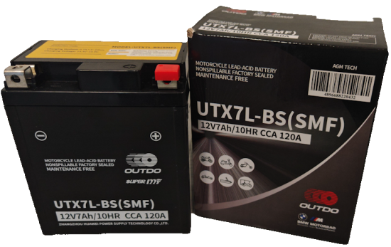 Outdo UTX7L-BS akumulator za motor YTX7L-BS • 12V 7Ah • DXŠXV: 114x70x130 • CCA 120 A