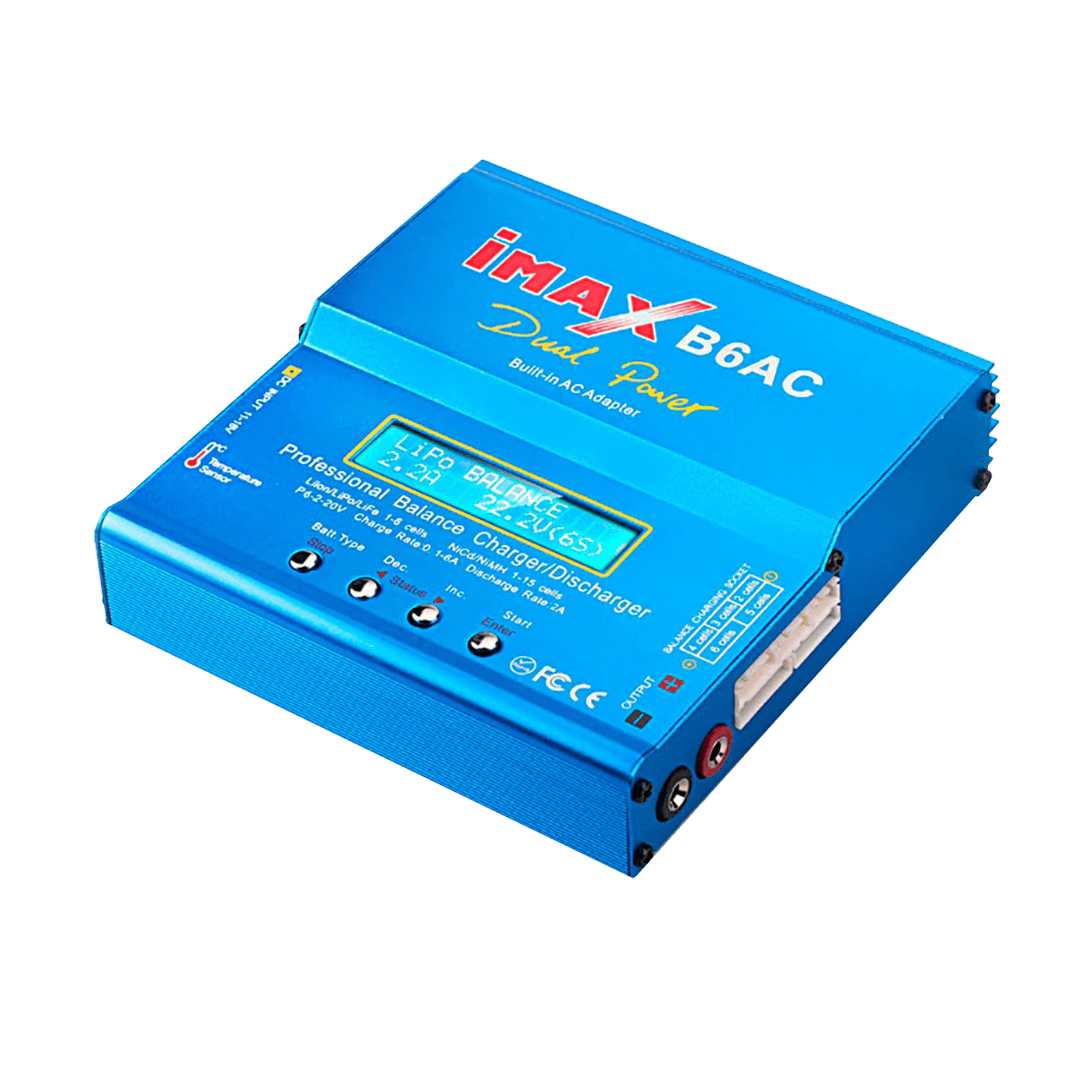 Imax B6AC je majhen procesorski polnilnik z izhodno močjo do 80 W, zasnovan za polnjenje Ni-Cd, Ni-Mh, Li-Po, Li-Lo, Li-Fe in PB baterij.
