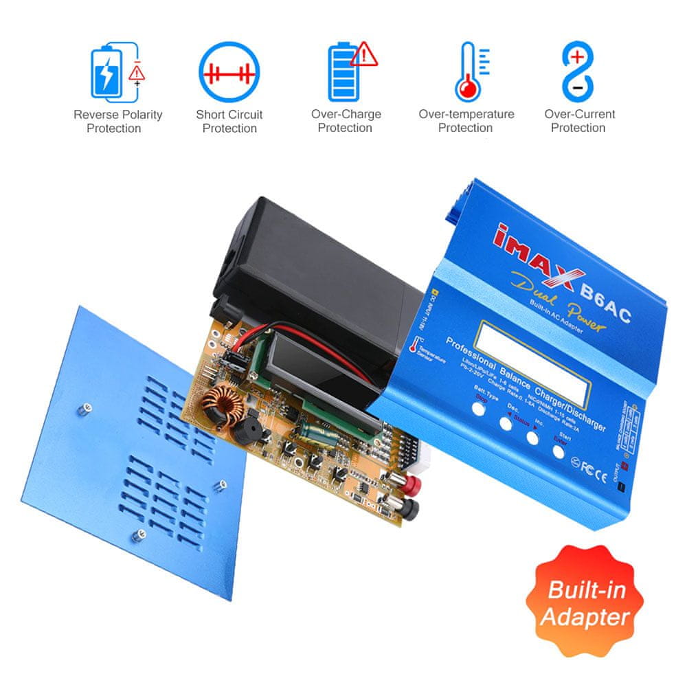 Optimizirana operacijska programska oprema polnilnika Imax B6AC ima funkcijo AUTO, ki nadzoruje hitrost polnjenja med polnjenjem in praznjenjem. Pri litijevih baterijah lahko to prepreči pregrevanje, ki lahko povzroči eksplozijo zaradi nepravilnih nastavitev uporabniških parametrov. Polnilnik bo samodejno prekinil tokokrog in sprožil alarm v primeru okvare. Vsi načini delovanja tega polnilnika so samodejno nadzorovani za največjo varnost. Vse nastavitve lahko konfigurira uporabnik.