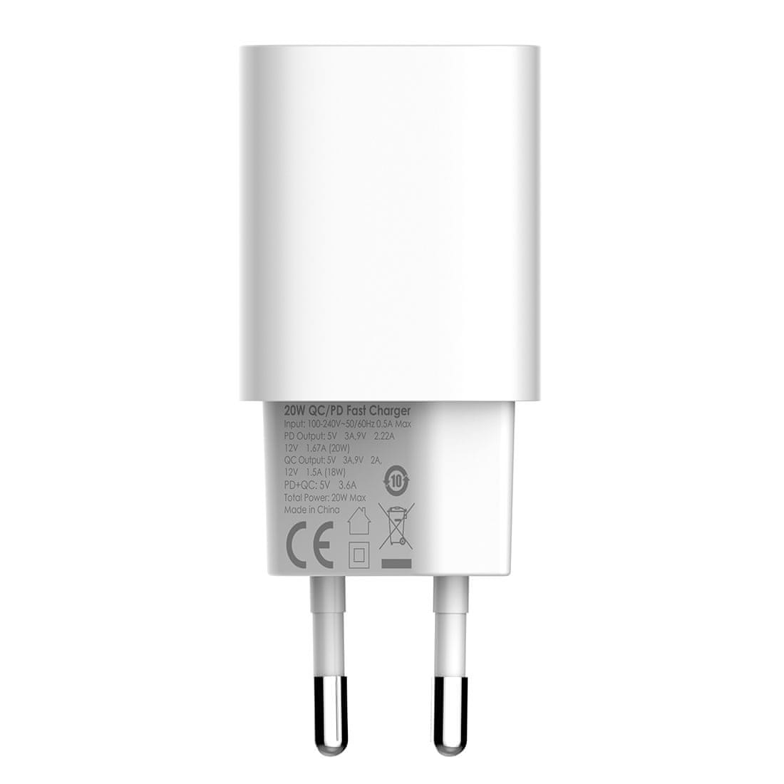 Polnilec s podporo za Power Delivery ter QC3.0 USB-A in USB-C. Moč 30 W, največji tok 3,6 A. Priložen je kabel USB-C z USB-C.