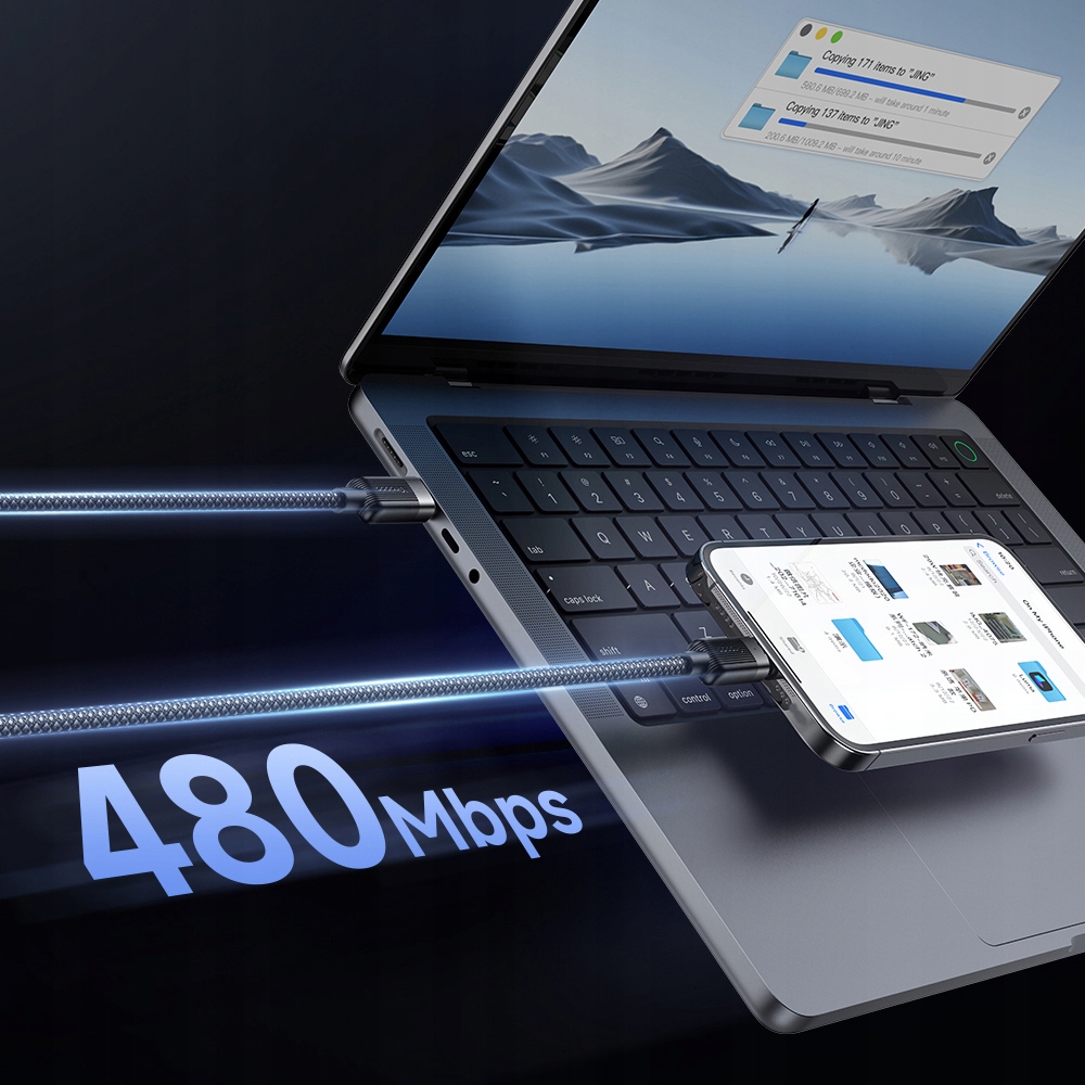 Kabel je opremljen z vgrajenimi magneti, ki ga samodejno zvlečejo v urejeno obliko in tako odpravijo zapletanje. To je izjemno praktična rešitev, ki omogoča priročno shranjevanje in urejenost na mizi ali v torbi.