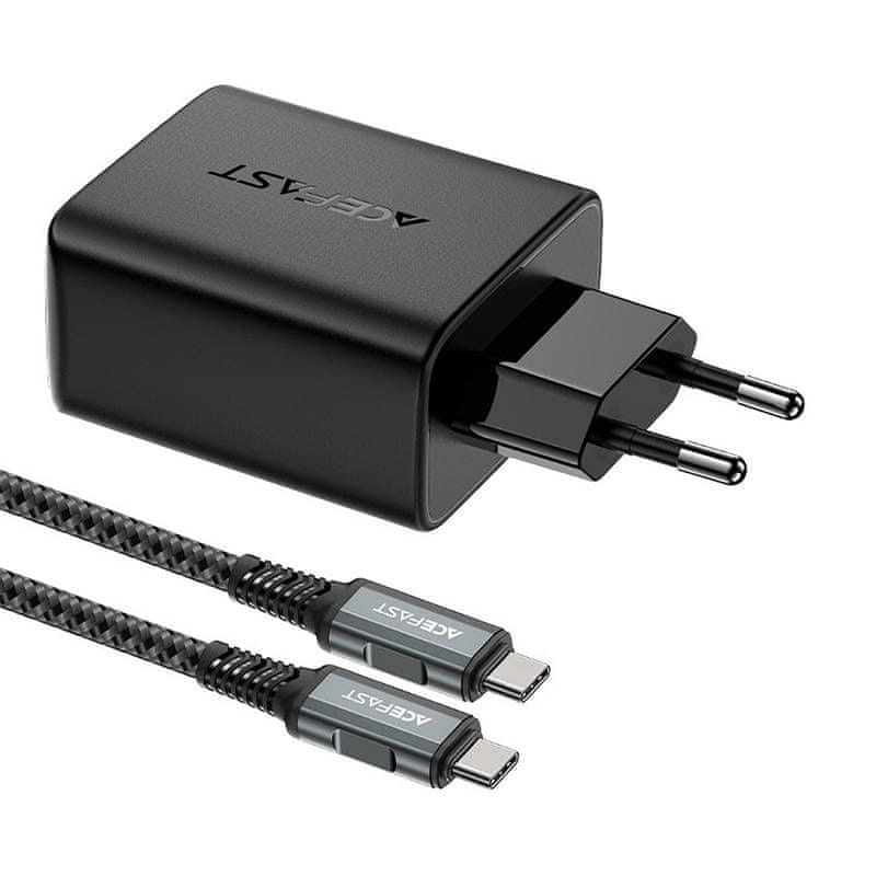 AceFast A17 omrežni polnilec, 65W GaN + kabel USB-C (črn)
