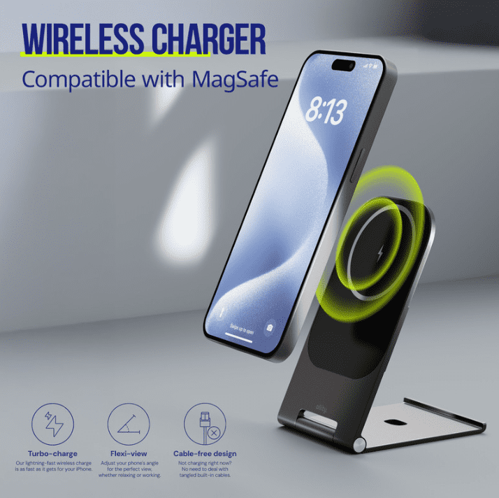 Allity AWC-200-15WMS brezžični polnilec / stojalo, 15W, MagSafe, USB-C, siv (Graphite)