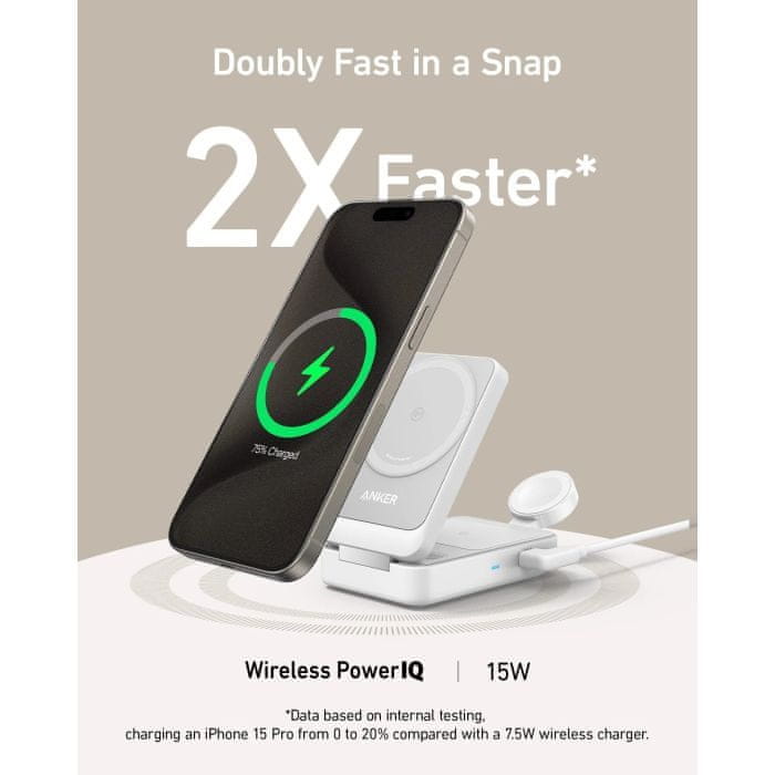 Anker MagGo Zložljiva polnilna postaja 3v1, bela