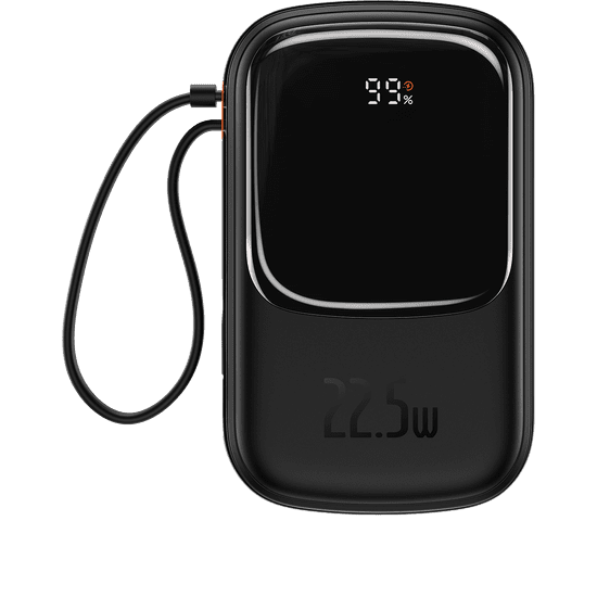 BASEUS Qpow Digital Display powerbank s hitrim polnjenjem 20000 mAh 22,5 W QC/PD/SCP/FCP z integriranim kablom USB-C črna