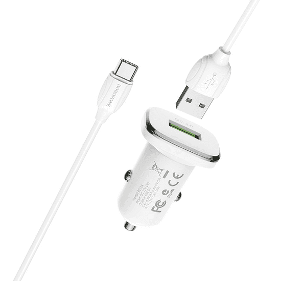 Borofone avtopolnilec 18W BZ12A USB-A QC 3.0 s kablom Type C 1m – bel