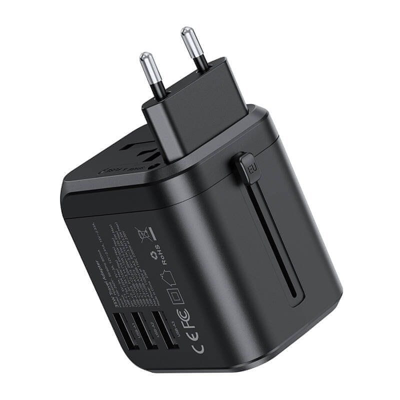 Potujete na počitnice ali poslovno potovanje? Vzemite s seboj Choetech PD5008! Polnilnik uporablja 35W max moč in tri USB-A ter en USB-C port, tako da lahko nanj priključite več naprav hkrati. Uspešno bo napolnil vaš pametni telefon, tablico ali TWS slušalke. Priključki za US, EU, UK in AU omogočajo priročno polnjenje vaše opreme v tujini.
