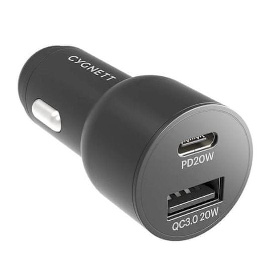 Cygnett avtomobilski polnilec cygnett usb, usb-c 20w (črn)