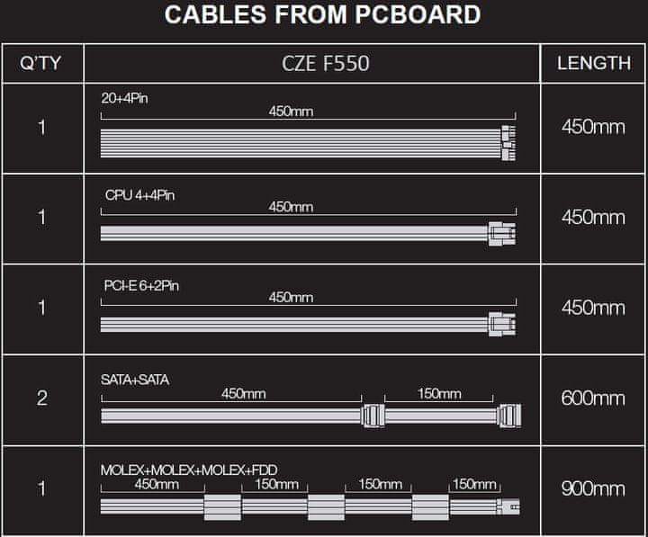 • 1× VGA PCI-E 6+2-pin 450 mm