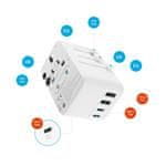 FIXED Potovalni adapter za EU, Združeno kraljestvo in ZDA/AUS, z izhodom 3xUSB-C in 2xUSB, GaN, PD 65W, bel