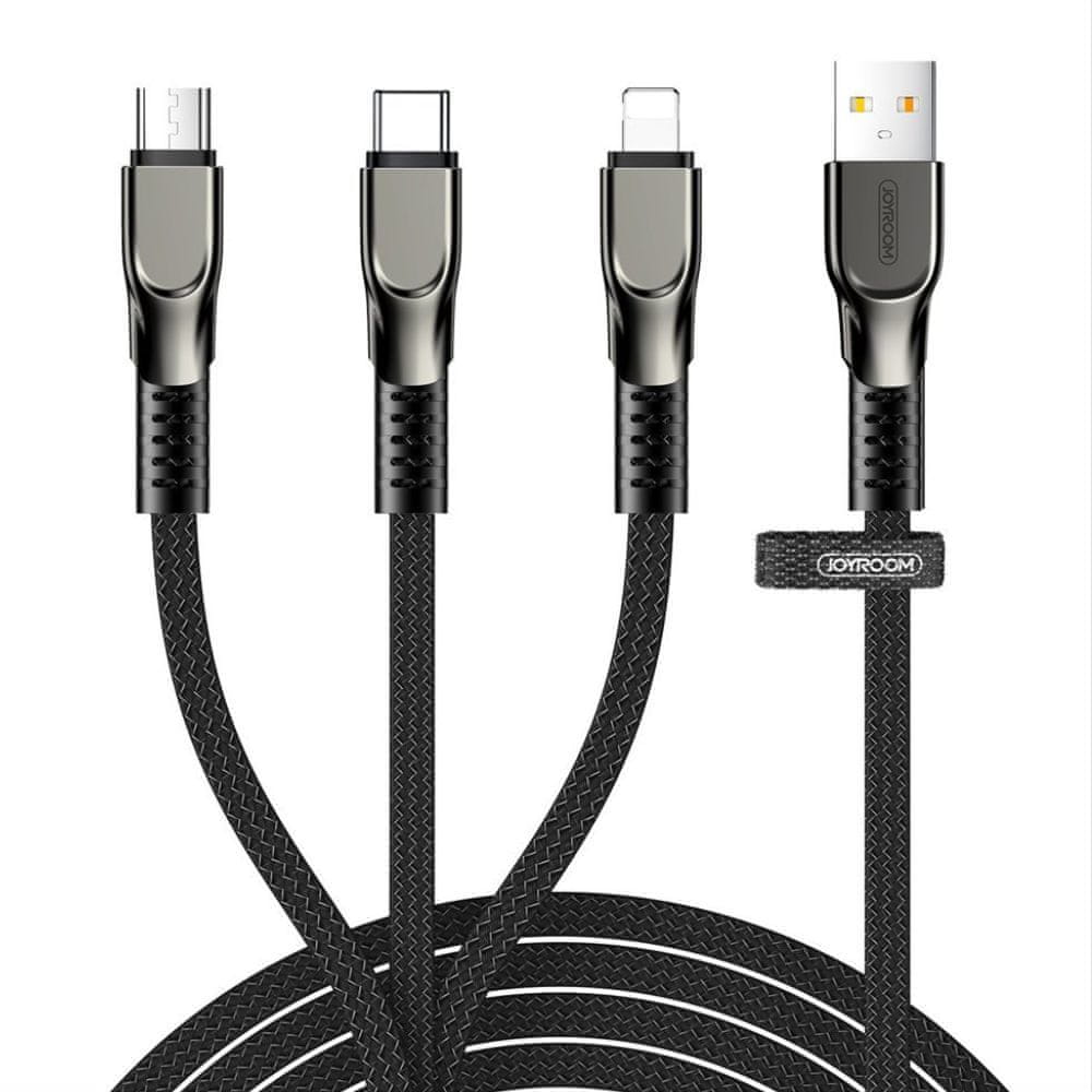 Joyroom 3in1 kabel USB - Lightning / Lightning / USB-C 3.5A 1.3m, črna