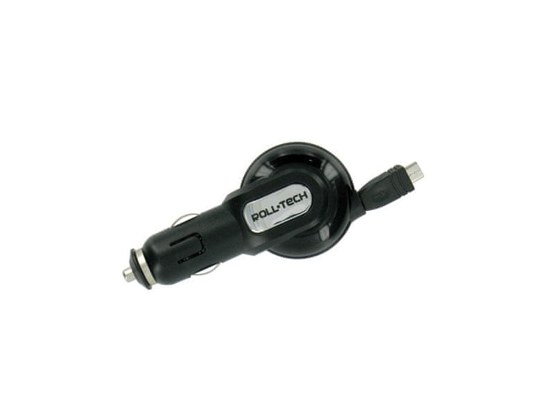 ROLL-TECH zložljivi polnilnik za vozila z mini USB priključkom za polnjenje mobilnih telefonov, tabličnih računalnikov ali drugih naprav. Prednost je 80 cm dolg polnilni kabel in zaščita pred prenapetostjo za polnjeno napravo.