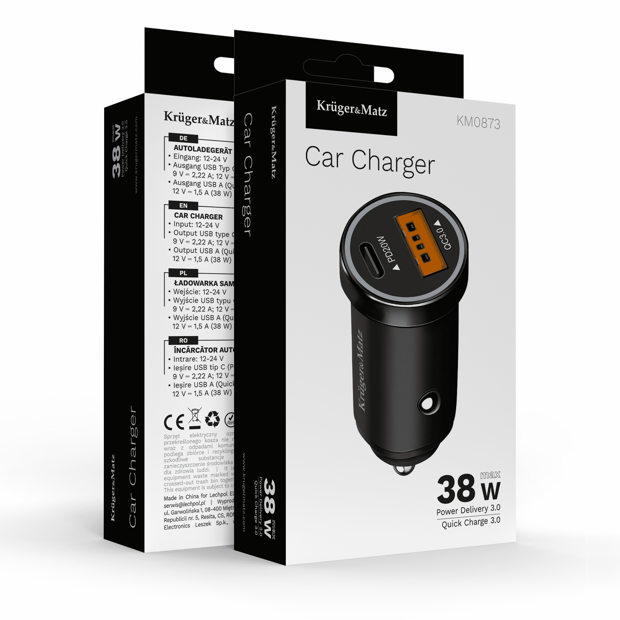 shumee 38W avtomobilski polnilnik Kruger&Matz s funkcijama Power Delivery in hitrega polnjenja