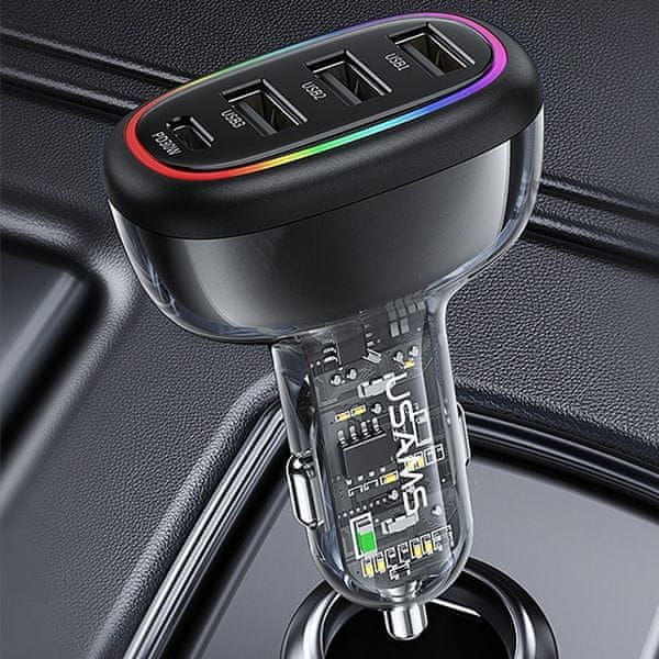 48W USAMS avtomobilski polnilnik Power Delivery 1×USB-C 3×USB-A črne barve Celoten opis