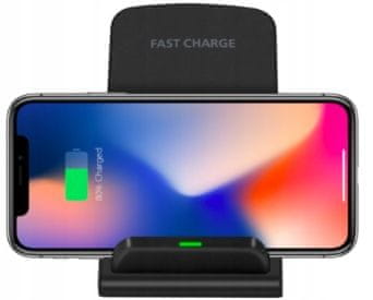 Polnilnik uporablja priljubljen standard Qi, ki omogoča brezžični prenos energije. Zahvaljujoč njemu lahko zdaj polnite naprave brez kablov. Zdaj lahko polnite svoje naprave z močjo do 10 W! Poleg tega polnilnik deluje kot stojalo, zaradi česar je popoln za vsako mizo, ne glede na to, ali ste doma ali v službi. Zahvaljujoč tej rešitvi bo vaš telefon vedno napolnjen!