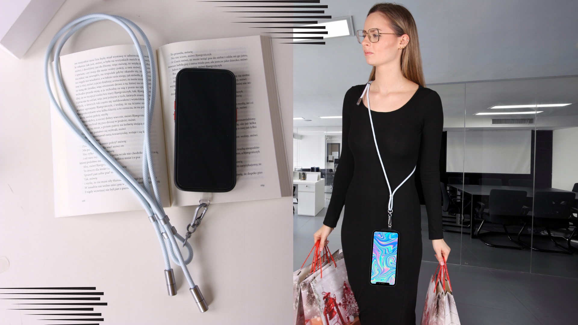 • Udobje in varnost – Zahvaljujoč inovativnemu pritrdilnemu vložku in trpežni vponki bo vaša naprava vedno varna, ne glede na okoliščine. Preprosto potisnite vložek med pametni telefon in ovitek, da uživate v udobju te moderne zasnove. Po dnevu aktivnosti pa samo z enim klikom snamete vrvico – vse to, ne da bi morali odstraniti ovitek!