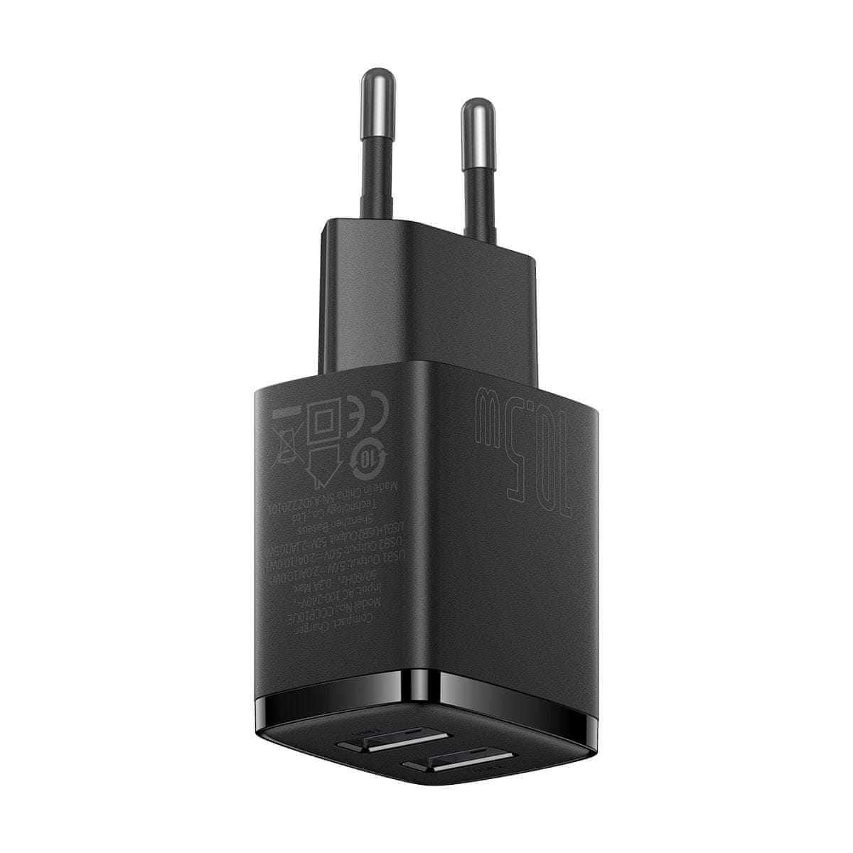 shumee Kompaktni 2x USB 10,5 W črni stenski polnilnik