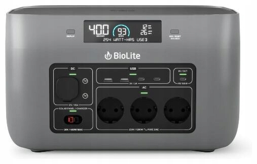 Zelo velik, lahko berljiv zaslon za povratne informacije in nadzor v realnem času. Varna in zanesljiva elektronska zasnova z 12-točkovnim varnostnim sistemom Biolite®. Krmilnik polnjenja MPPT (sledenje maksimalne točke moči) zagotavlja do 30 % več energije kot sistemi brez MPPT. Litij-ionska baterija z zmogljivostjo 1521 W. Do 1200 W neprekinjene moči (2400 W največje moči) pri izhodu 230 V AC. Kapaciteta baterije: 1521 Wh. Vključena sta USB-C PD (100 W) in brezžično polnjenje. Induktivna polnilna postaja za pametne telefone. Števci vatnih ur spremljajo porabo energije skozi čas in med različnimi dejavnostmi.