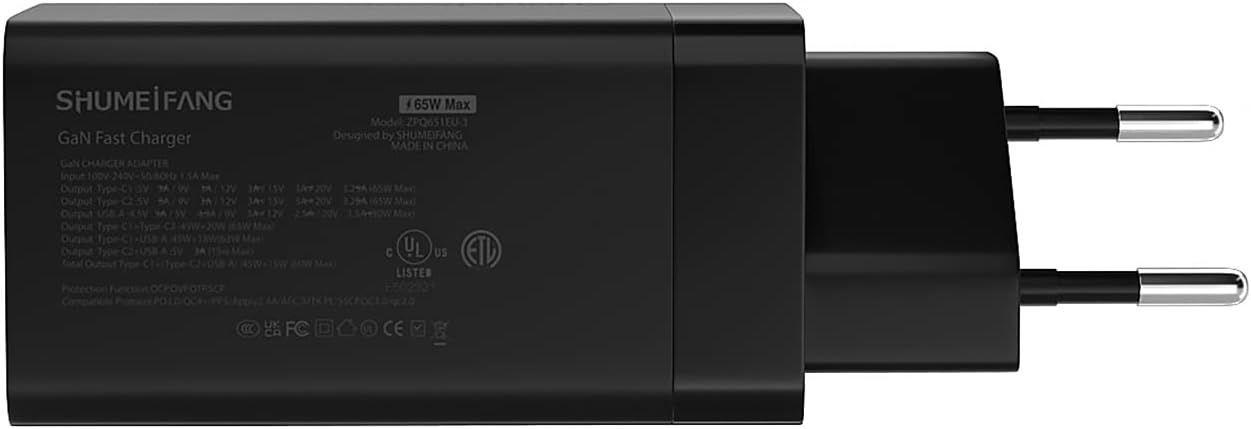 USB C POLNILEC 65W FAST CHARGE USB-A SHUMEIFANG ČRN 3V1 QC SAMSUNG Celoten opis