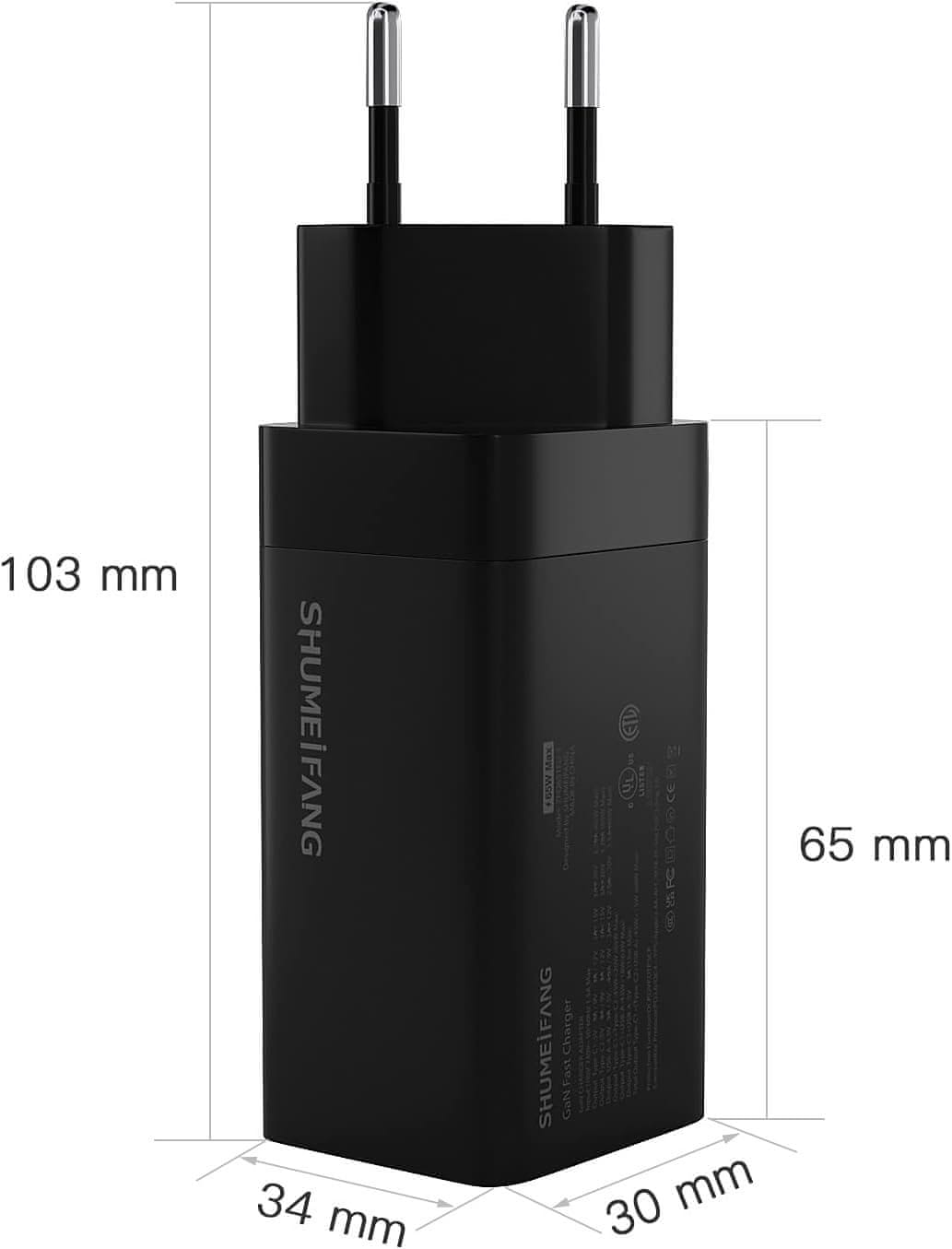 shumee USB C POLNILEC 65W FAST CHARGE USB-A SHUMEIFANG ČRN 3V1 QC SAMSUNG