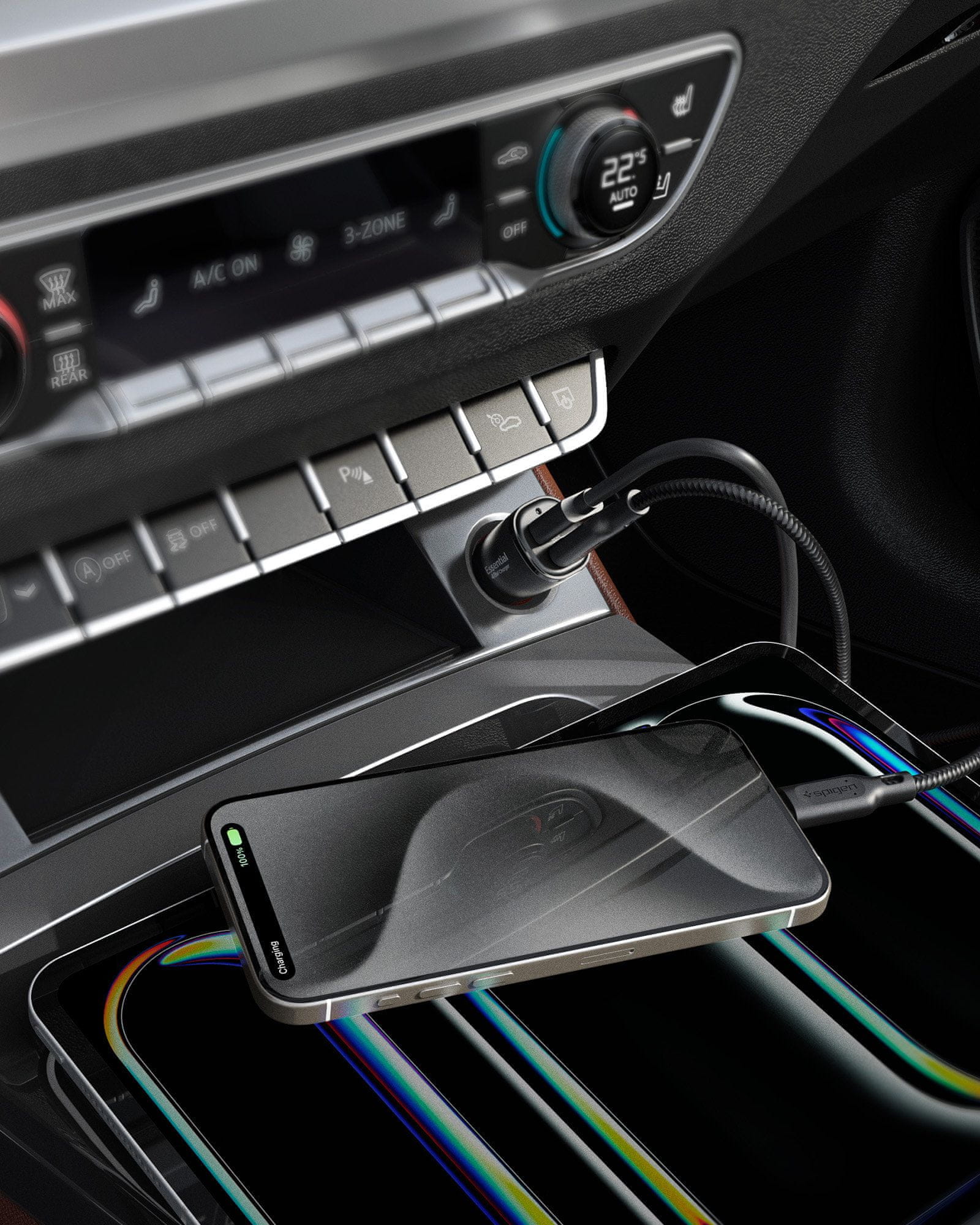 Avtomobilski polnilnik Spigen ArcStation Essential 48W kompaktne zasnove, izjemno hitro polnjenje zahvaljujoč tehnologiji Quantum Boost, 15-točkovni varnostni standard. Celoten opis