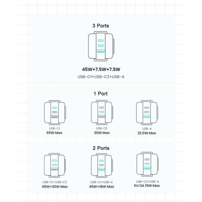 z 2 vhodoma USB C in 1 vhodom USB A je naš polnilnik združljiv z različnimi napravami.