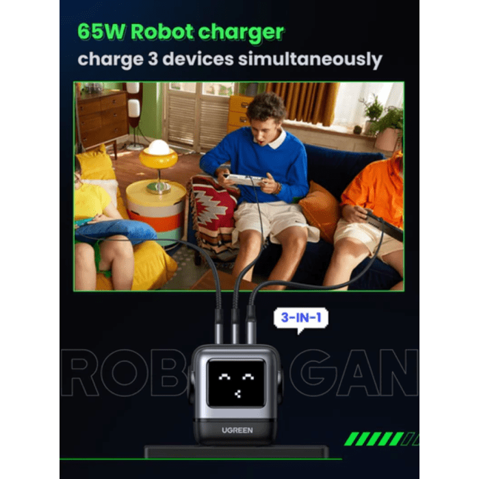 Ugreen Nexode Robot GaN 65W Polnilnik - Siva