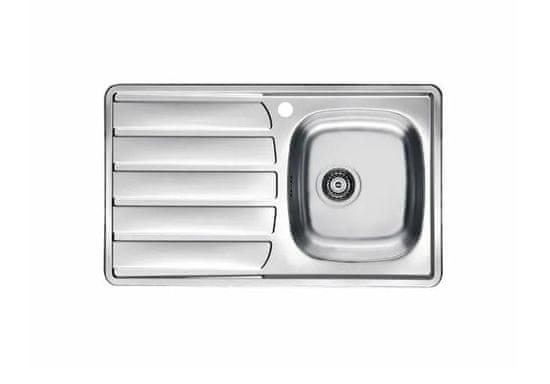 Enojno kuhinjsko pomivalno korito s priročno odlagalno površino je izdelano iz nerjavečega jekla s satin površinsko strukturo. Minimalna zahtevana širina omarice je 450 mm.