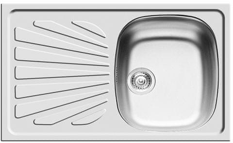 Pomivalno korito iz nerjavečega jekla Cr Ni 18/10 (DIN 1.4301) najvišje kakovosti. To jeklo za živila z visoko vsebnostjo kroma in niklja je najprimernejše za izdelavo pomivalnih korit iz nerjavnega jekla, katerega največje prednosti so odpornost proti koroziji, tudi če je površina motena, odpornost na visoke temperature, visoka vzdržljivost in higiena. Pomivalno korito se ne lušči, ne razpoka in se ne zlomi. V metalurški proizvodnji ga je mogoče reciklirati, zato je okolju prijazen. Površina pomivalnega korita je gladka, dimenzije korita so 75,5 × 48 cm, dimenzije posode – 34 × 40 × 15 cm. Površina umivalnika ima odtok, ki je povezan s sifonom iz paketa. Sifon vključuje tudi priključek za pomivalni stroj s popolnim montažnim priborom. Pomivalno korito je vgrajeno v delovno površino, ki je nameščena na kuhinjski omarici pod pomivalnim koritom, ki je široka vsaj 45 cm. Pomivalno korito je obojestransko (lahko ga shranite na obeh straneh). V svoji ponudbi imamo ustrezne pipe.