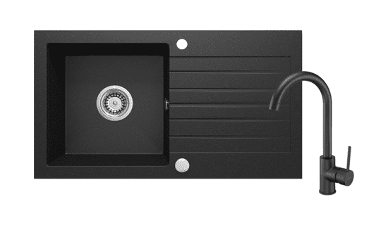 Set je izdelan iz granitnega kompozita, ki je kombinacija kremenčevega peska in smol v popolnem razmerju, zato je odporen na udarce in visoko temperaturo do 250°C, razbarvanje in toplotni šok*. Poleg tega pa ne absorbirajo neprijetnih vonjav in imajo hidrofobne lastnosti, zato odbijajo delce vode.