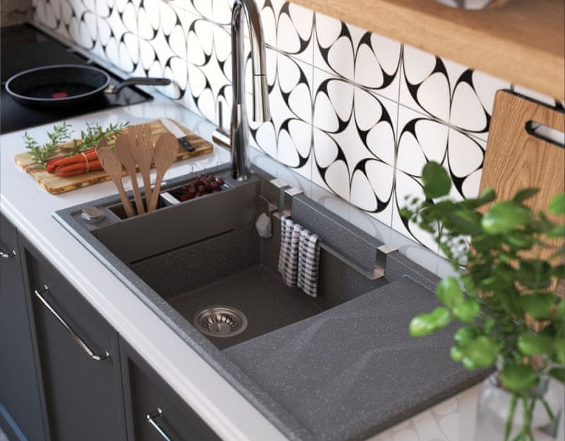 Magnetic je nova linija granitnih korit, ki se ponaša z neverjetno inovativnostjo in funkcionalnostjo. Korito je opremljeno z notranjimi magneti, kar vam omogoča, da nanj namestite jeklene dodatke ter tako ustvarite dodatni prostor za uporabo. Korito magnetic se ponaša z veliko površino notranje posode korita, ki omogoča pomivanje še tako velikih posod.