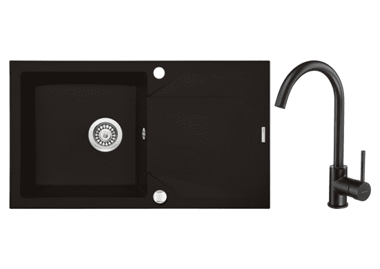 Kuhinjski set Deante ZQJY N113 združuje granitno korito v barvi Nero (črna) in ujemajočo se mat črno armaturo. Korito je odporno na temperature do 250°C, primerno za omarice širine 50 cm in vključuje Space-saver sifon ter avtomatsko zapiranje odtoka (pop-up ekscenter). Celoten opis