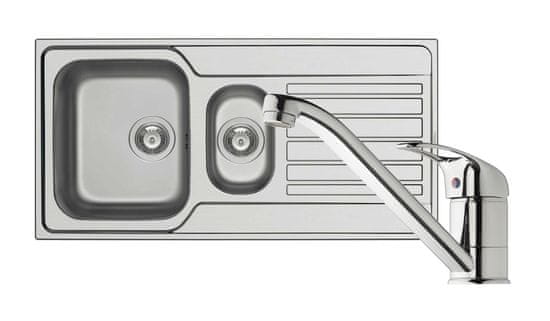 Set Pomivalnega korita iz nerjavečega jekla in pipe PYRAMIS. Pomivalno korito Fedra ponuja skupne dimenzije 100 × 50 cm z globino 17,5 cm in 2 kopeli. Izpustni premer je 90 mm. Odporen je proti koroziji (tudi pri poškodbi površine) in visokih temperaturah. Na voljo je z vgrajenim poliuretanskim tesnilom na dnu korita – EasyFix. Celoten opis