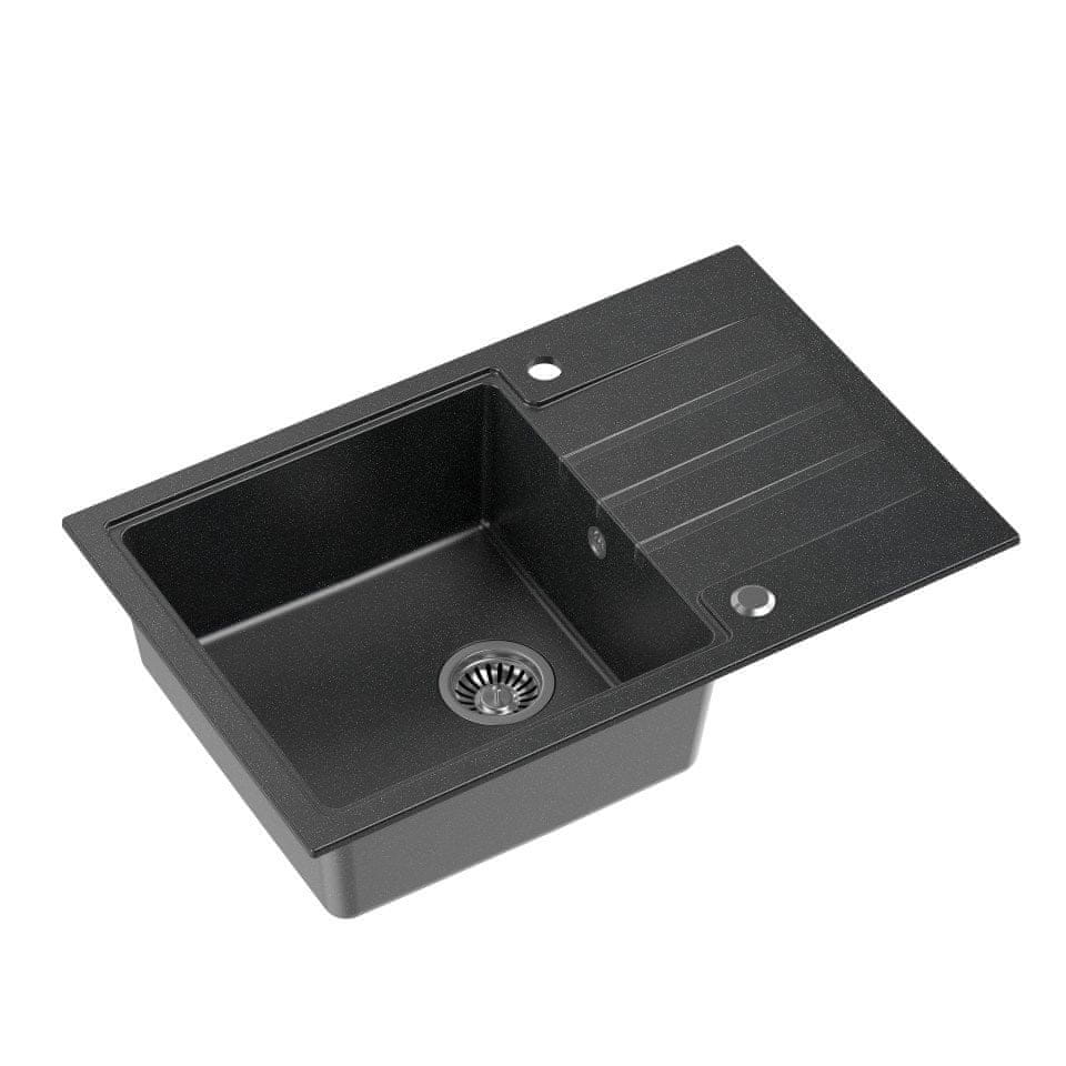 QUADRON Graniten pomivalnik QUADRON PETER 111 Steingran črn s samodejnim sifonom in navojnim pokrovčkom