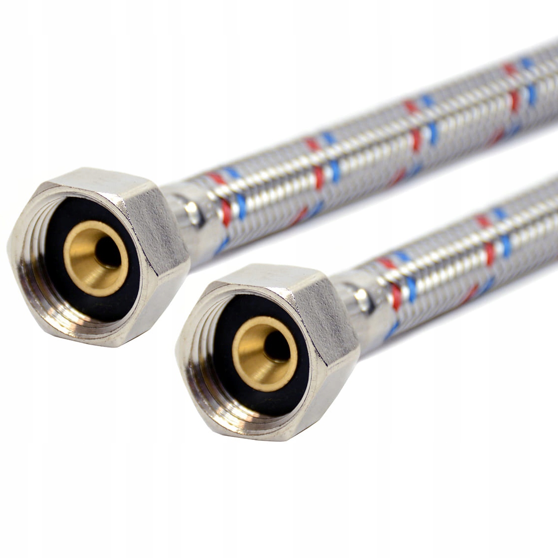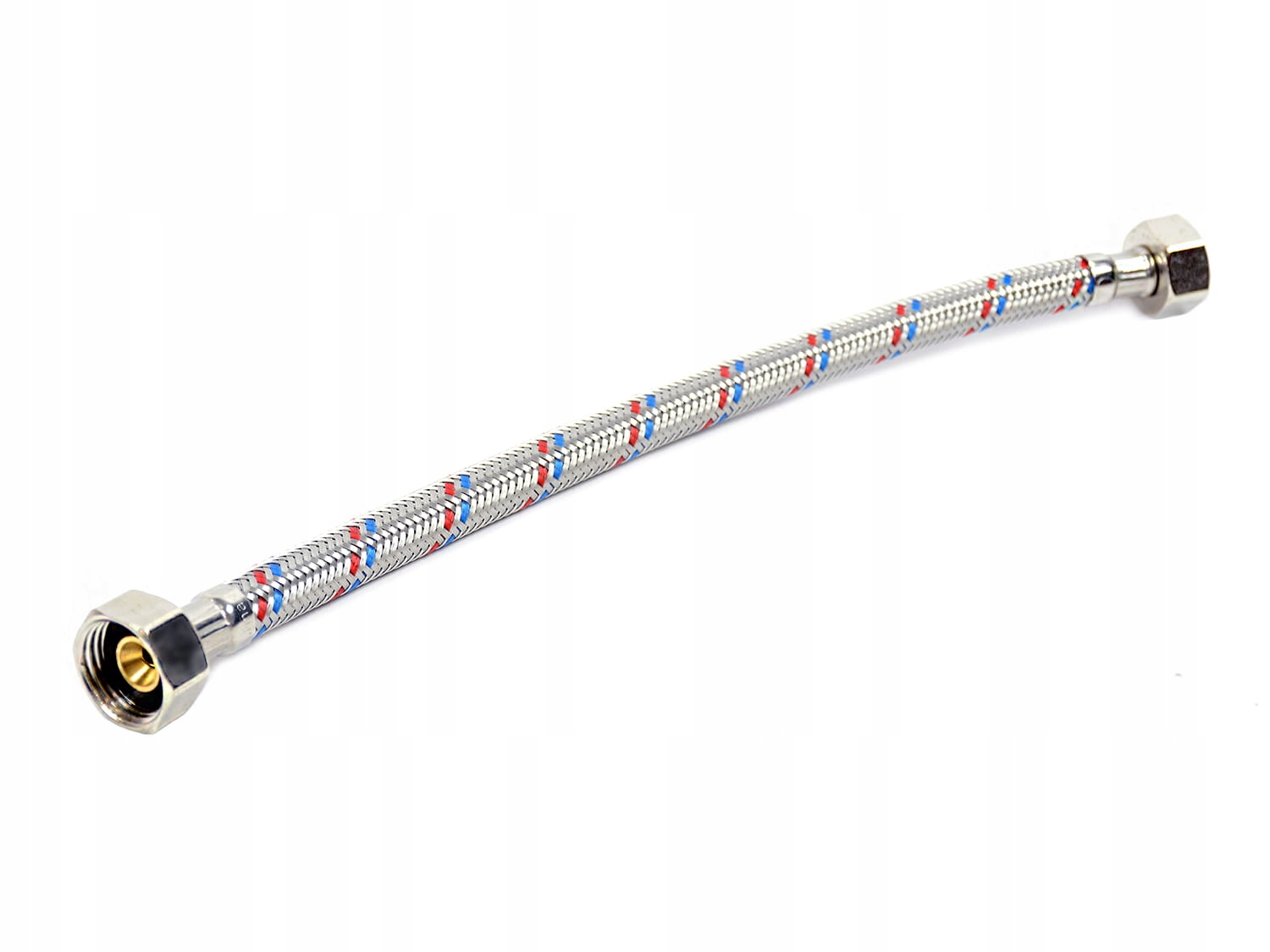 Fleksibilna priključna cev z ojačitvijo iz nerjavečega jekla, zasnovana za pipe in gospodinjske aparate. Cev ima tesnila za zagotavljanje tesne povezave.