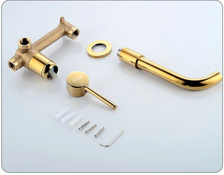 shumee Vgradna stenska armatura za umivalnik, brušena zlata mat + škatla