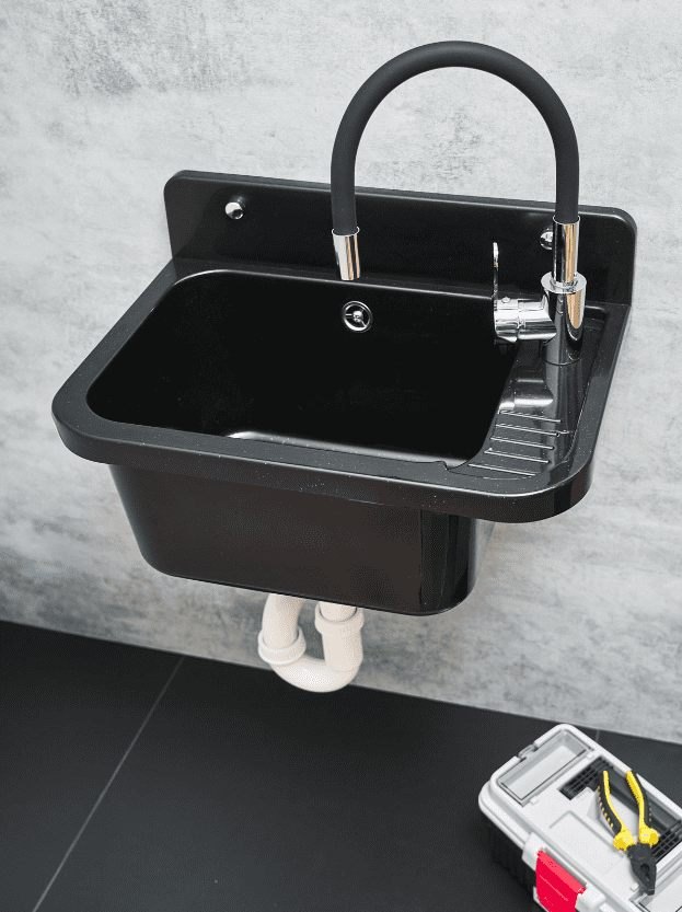 </strong></li><li>Prilagodljiv izliv</li><li>Odporen na visoke temperature <strong>prevleka </strong>in razbarvanje</li><li><strong>Preprosta namestitev</strong> mogoče tudi brez specialističnega znanja</li><li><strong>Priložena je vsem, kar je potrebno za montažo</strong></li></ul><h2>Prednosti izdelka:</h2><ul><li><strong>Izdelana iz materiala najvišje kakovosti</strong></li><li><strong>Sifon s cedilo iz nerjavečega jekla</strong></li><li><strong>Pipa s prilagodljivim izlivom</strong></li><li><strong>Enostavnost čiščenja</strong></li></ul><h2>Specifikacija - umivalnik:</h2><ul><li>Izdelano iz polipropilena</li><li>Odporen na kemikalije in visoke temperature</li><li><strong>Primerno za notranjo in zunanjo uporabo</strong></li><li>Idealno za garažo, kurilnico, delavnico, pralnico</li><li>Za stenske in talne mešalnike</li><li><strong>Set vključuje vse, kar je potrebno za namestitev: sifon, namestitveni komplet, pipa/armatura</strong></li></ul><h2>Specifikacija - armatura/pipa:</h2><ul><li>Izliv s prožno cevjo</li><li>Set vključuje: <strong>armatura, montažni komplet, tesnila, razpršilnik</strong></li><li><strong>Cevi za povezavo pipe</strong></li><li>Barva: <strong>Krom + črna</strong></li><li>Zaključek: <strong>Kovinski</strong></li><li>Vrsta pritrditve: <strong>Enojna ročica</strong></li></ul><h2>Najpomembnejše lastnosti izdelka:</h2><ul><li>Kuhinjska pipa <strong>iz medenine</strong></li><li><strong>Pomivalno korito iz polipropilena</strong></li><li>V <strong>črni </strong>barvi</li><li><strong>Keramična kartuša</strong></li><li>Standardna pritrdilna luknja <strong>35 mm</strong></li><li>Vrteči se izliv <strong>360