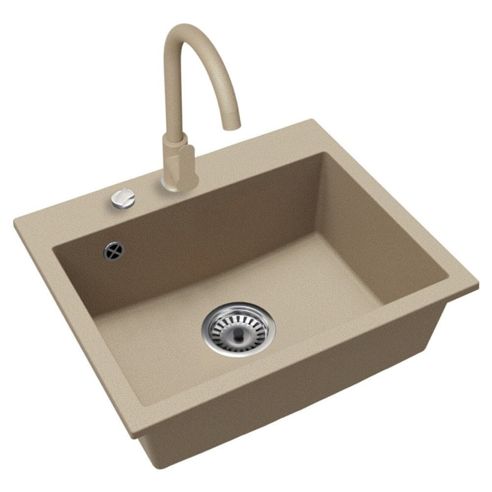 KONDELA Granitno kuhinjsko korito s sifonom Siven 55 58x49 cm - bež