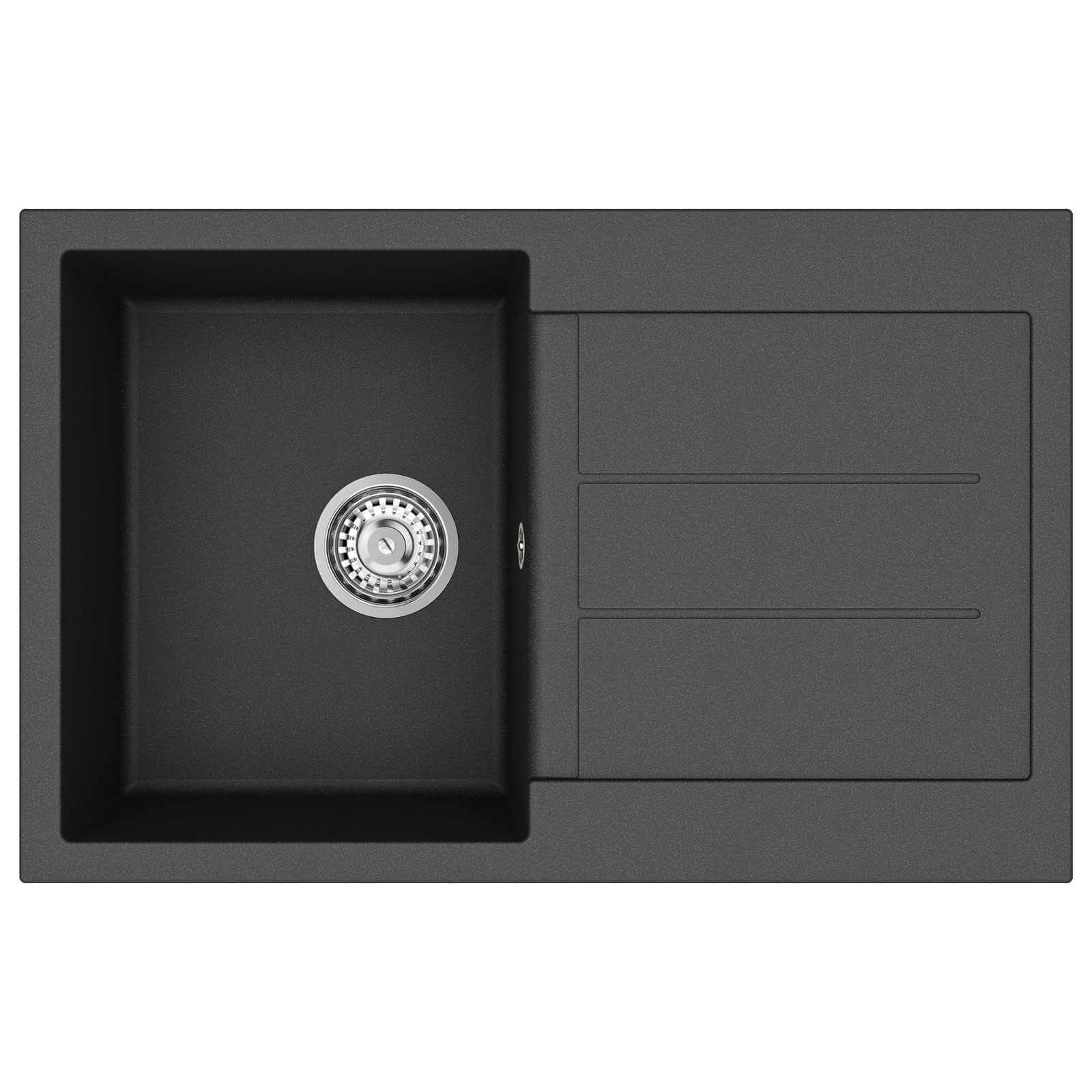 Vidaxl Umivalnica Črna 780 x 500 mm 80% Kvarc in 20% Smola