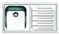 Enojno kuhinjsko pomivalno korito s priročno odlagalno površino je izdelano iz nerjavečega jekla s satin površinsko strukturo. Minimalna zahtevana širina omarice je 450 mm.