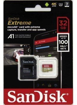 SanDisk Extreme microSDHC pomnilniška kartica ponuja 32 GB shranjevalne kapacitete. Primerna je za naprave, ki podpirajo microSDHC kartice. Ponaša se s super visoko hitrostjo prenašanja podatkov, saj bere s hitrostjo do 100 MB/s, zapisuje pa s hitrostjo do 60 MB/s. Idealna za uporabo v naprednejših DSLR fotoaparatih in HD kamerah. Spominska kartica je primerna za zajemanje 4K Ultra HD in Full HD videa, prav tako pa je optimizirana za hitrejše zaganjanje aplikacij na vašem pametnem telefonu.