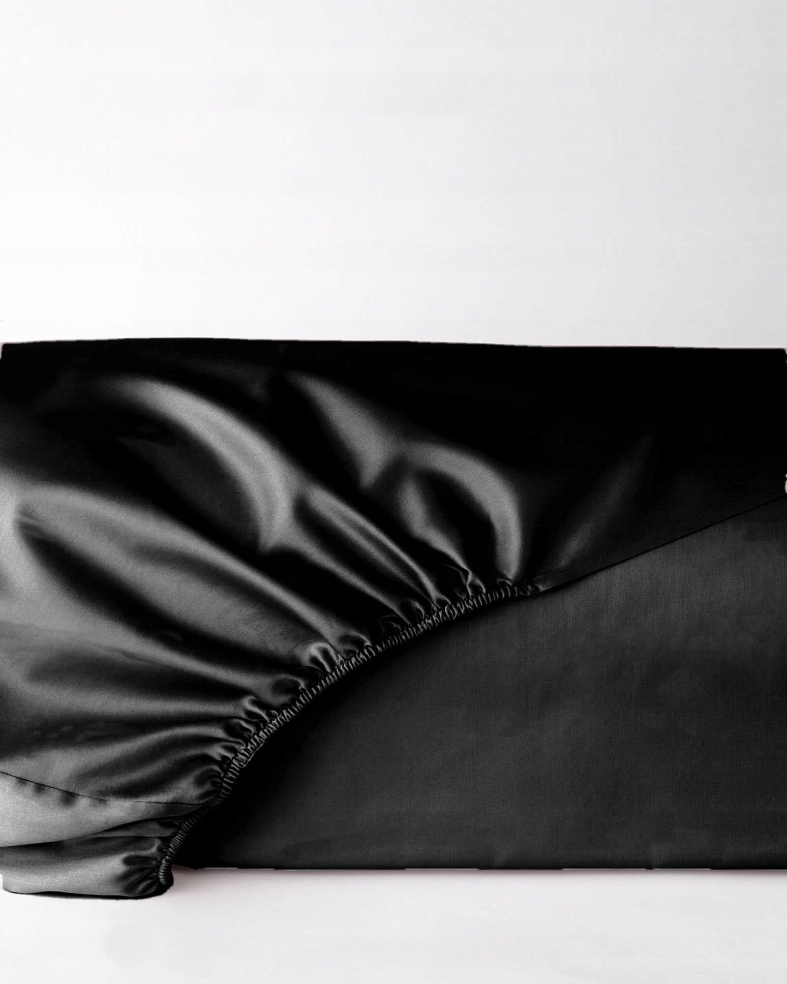 Črna satenasta rjuha na oprijet način MARO HOME za višino vzmetnice 25 cm.