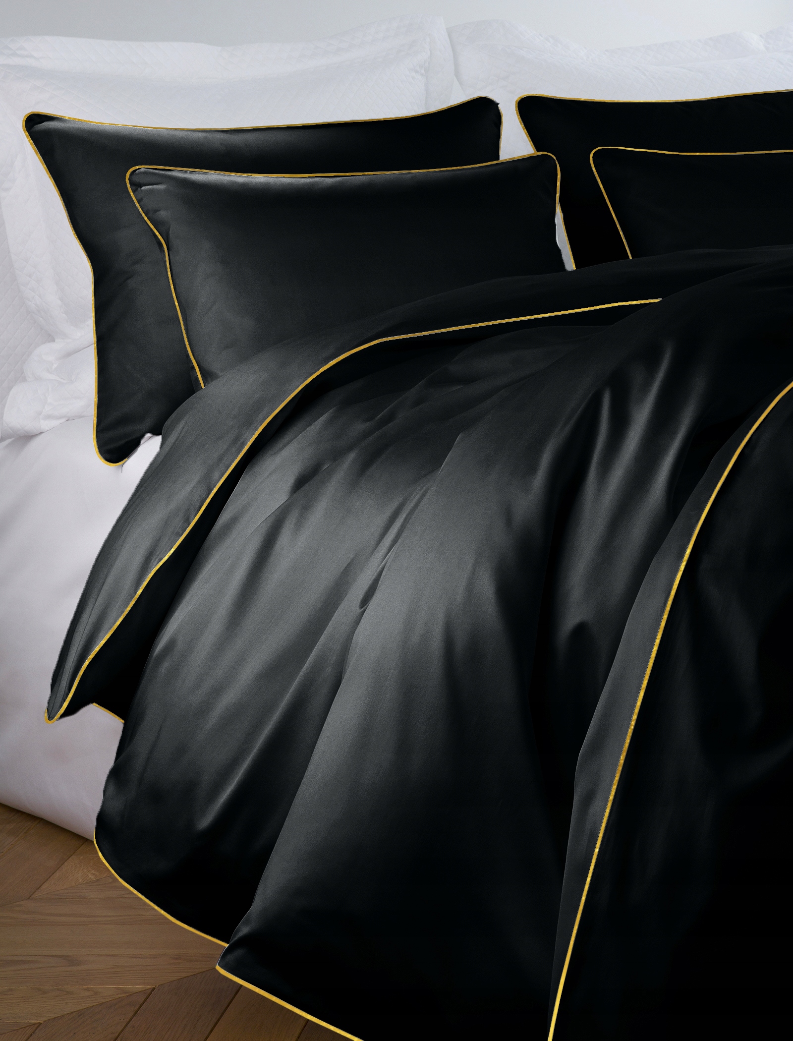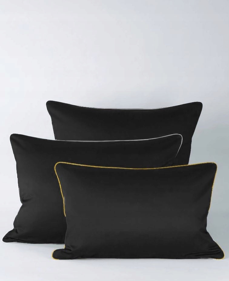 Komplet satenaste posteljnine SAN ANTONIO, črne barve z zlatim robom, znamke MARO HOME